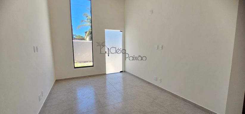 Casa composta por dois quartos sendo 1 suíte, ampla sala com o pé direito alto, cozinha, área de serviço, quintal gramado e vagas na garagem.