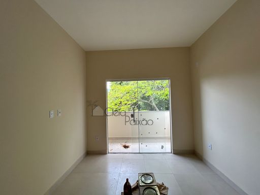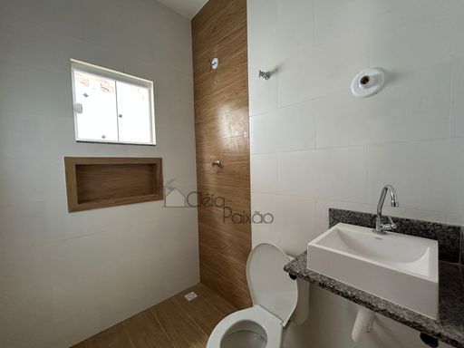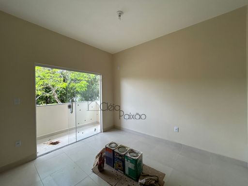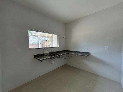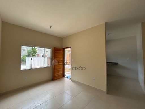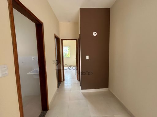 Casa com dois quartos sendo 1 suíte, ampla sala, cozinha, banheiro social, área de serviço, quintal gramado, área gourmet.
