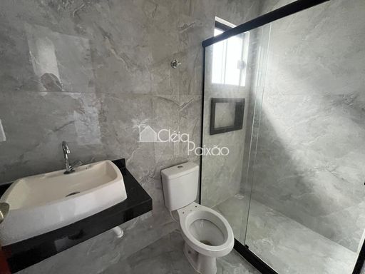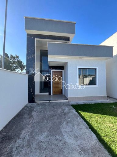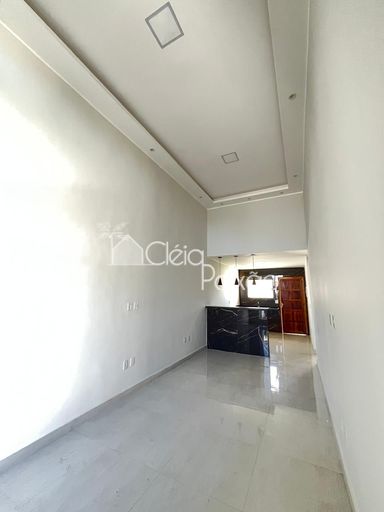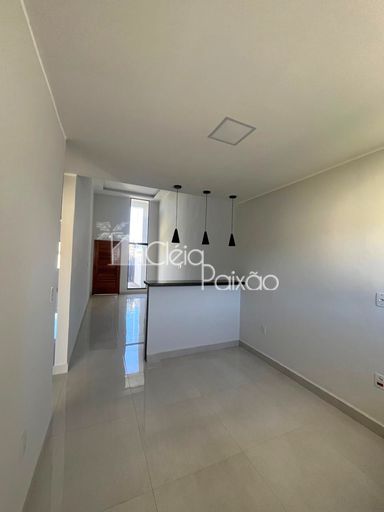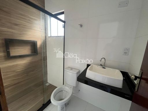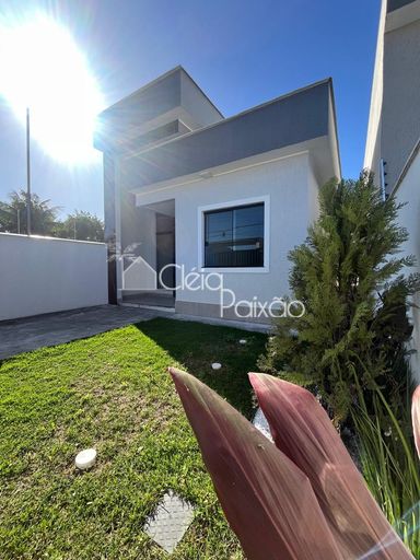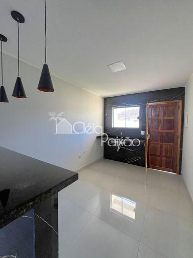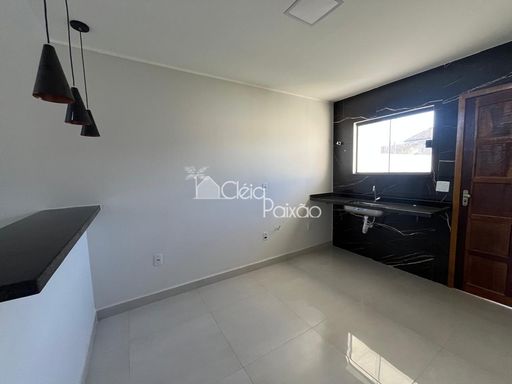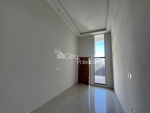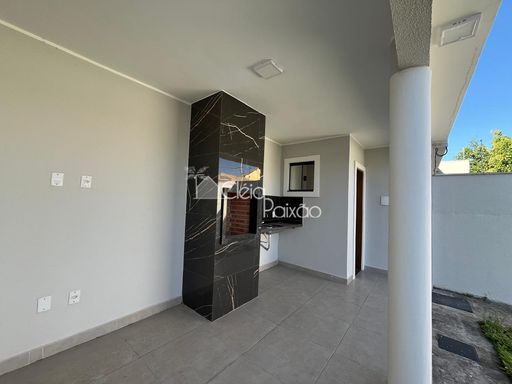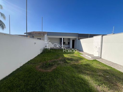 Casa com dois quartos sendo 1 suíte, ampla sala com o pé direito alto, cozinha americana, área de serviço, área gourmet com churrasqueira, pia e lavabo, chuveirão, quintal gramado e vagas na garagem.