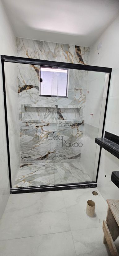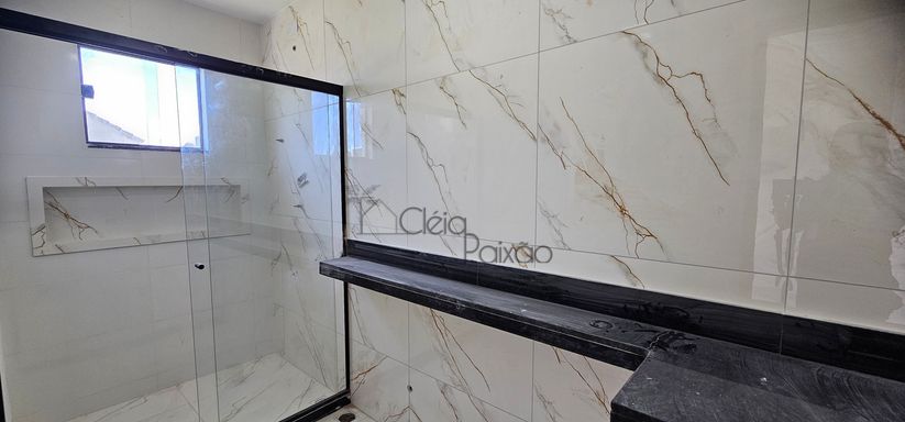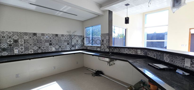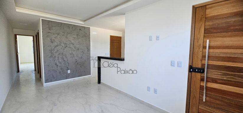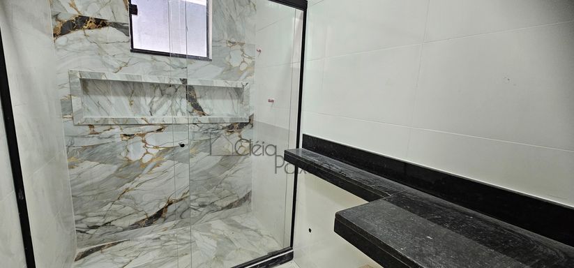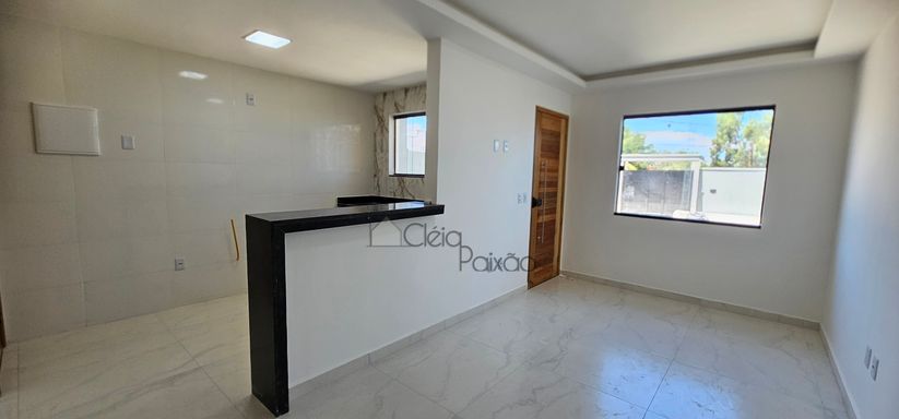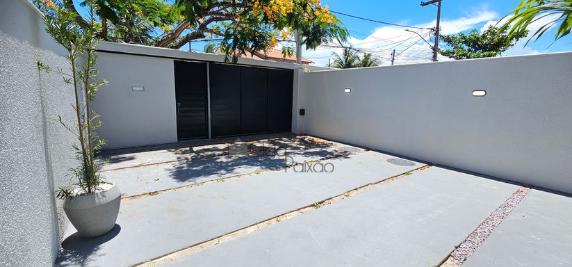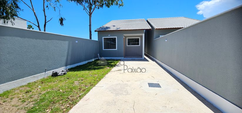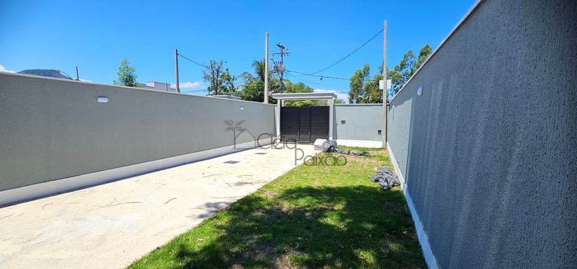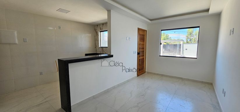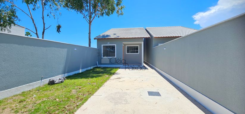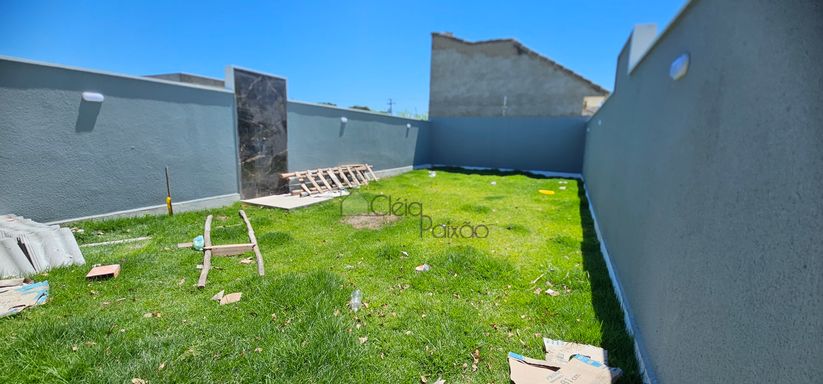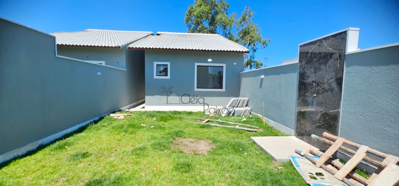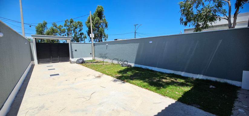 Casa composta por dois quartos sendo 1 suíte, ampla sala com fechadura digital, cozinha americana, área de serviço, quintal gramado, vagas na garagem.