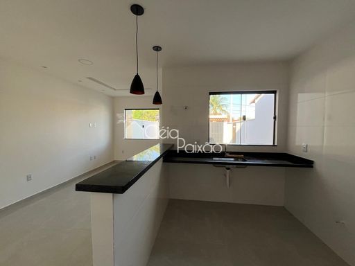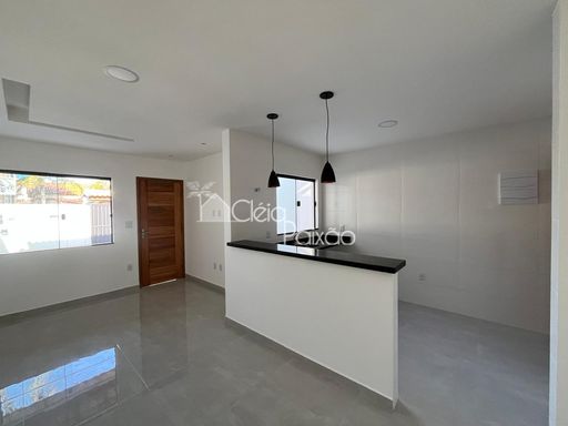 Ótima casa com dois quartos sendo 1 suíte, ampla sala, cozinha americana, banheiro social, área de serviço, vagas na garagem e um lindo quintal gramado.
