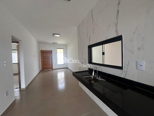 Ótima casa com dois quartos sendo 1 suíte, ampla sala, cozinha, banheiro social, área de serviço, vaga na garagem, área gourmet com churrasqueira e pia.
