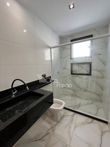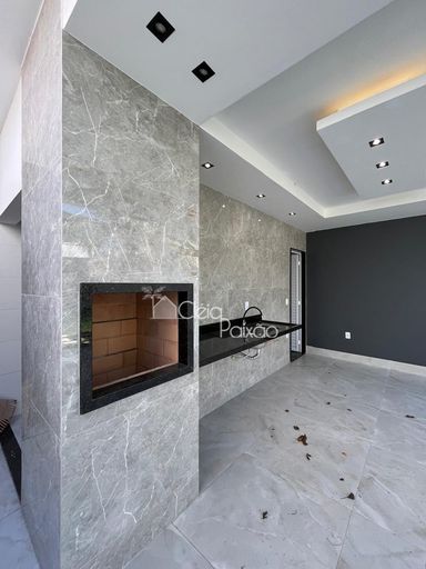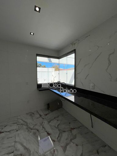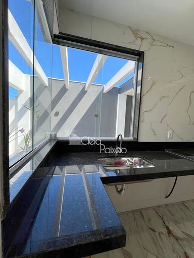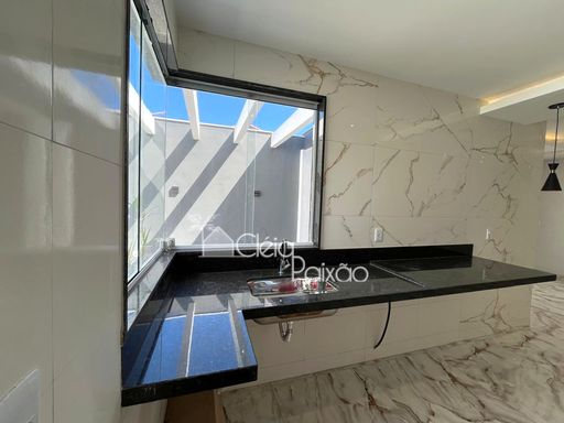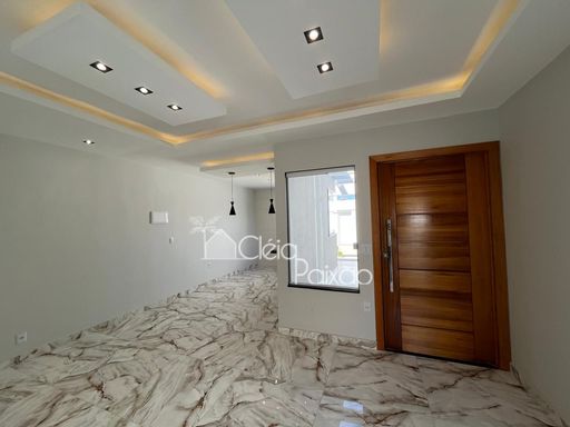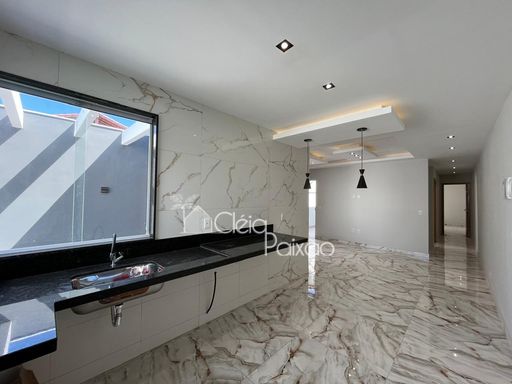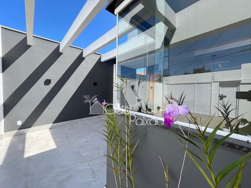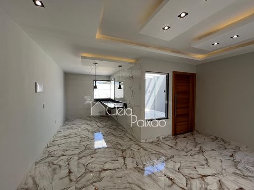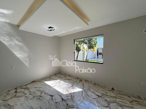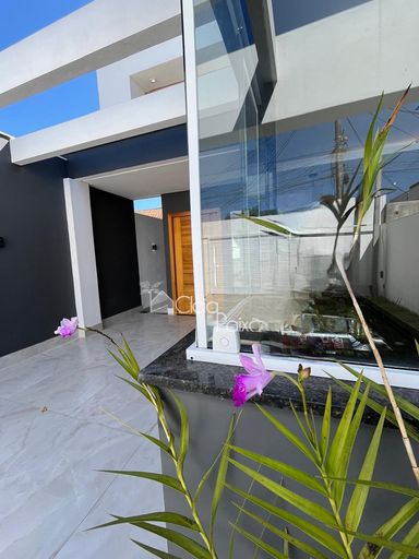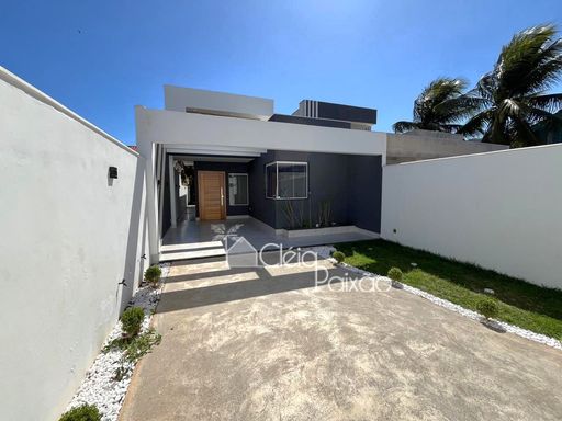 Excelente casa com dois quartos sendo 1 suíte, ampla sala, cozinha conceito aberto, área de serviço, área gourmet com churrasqueira e pia, quintal gramado atrás e cimentado na frente.