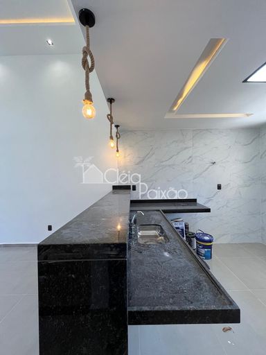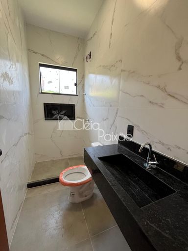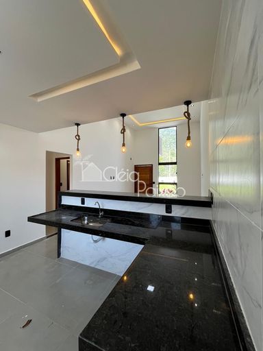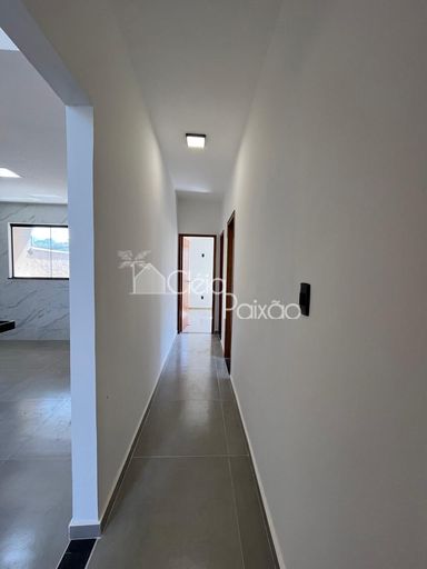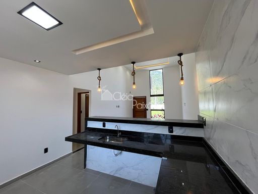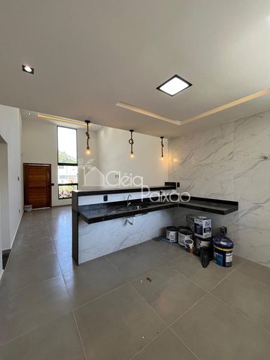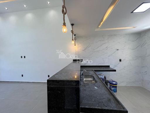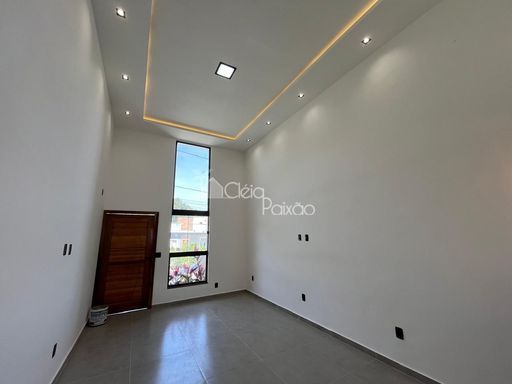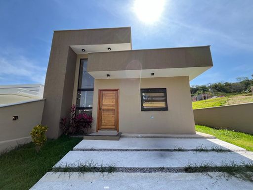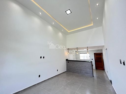 Casa moderna com 3 quartos sendo1 suíte, ampla sala com o pé direito alto, cozinha americana, área de serviço, quintal com churrasqueira e vaga na garagem.