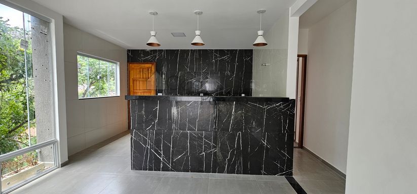 Casa composta por 3 quartos sendo 1 suíte com closet, ampla sala, cozinha americana, banheiro social, área de serviço, vaga na garagem, Águas do Rio, cisterna com 10 mil litros de água.