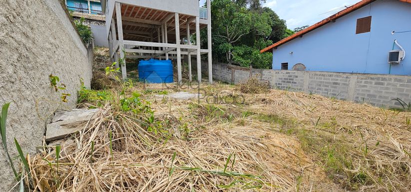 Quintal declive podendo fazer uma ótima área gourmet na parte de baixo da casa e a instalação de uma linda piscina.