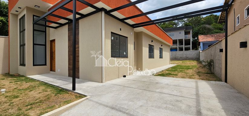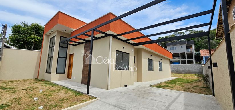 Casa muito linda e moderna, composta por 3 quartos sendo 1 suíte com closet, ampla sala com o pé direito duplo, cozinha americana, área gourmet integrada à cozinha, cisterna, águas do Rio.