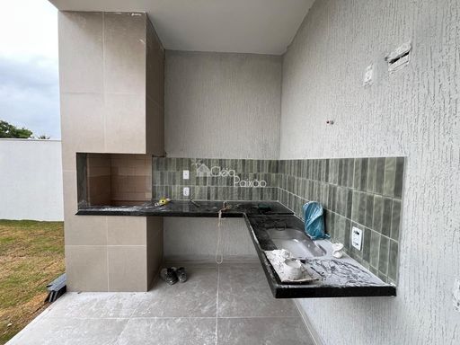 Excelente casa com 3 quartos sendo 1 suíte, ampla sala, cozinha americana, banheiro social, área gourmet com churrasqueira, pia e lavabo.