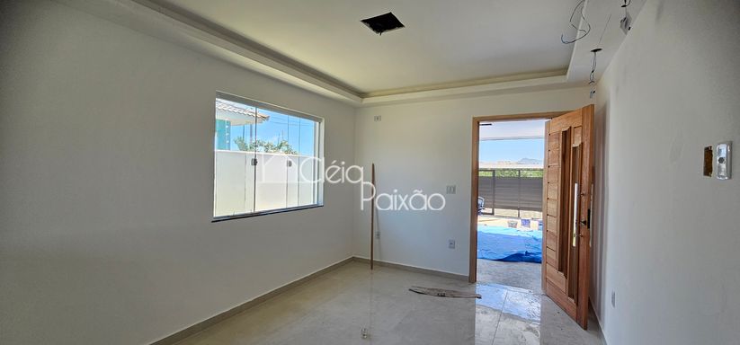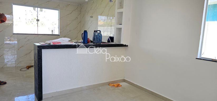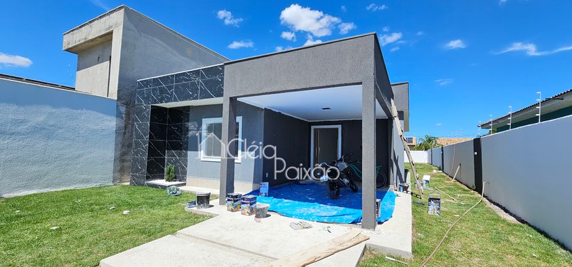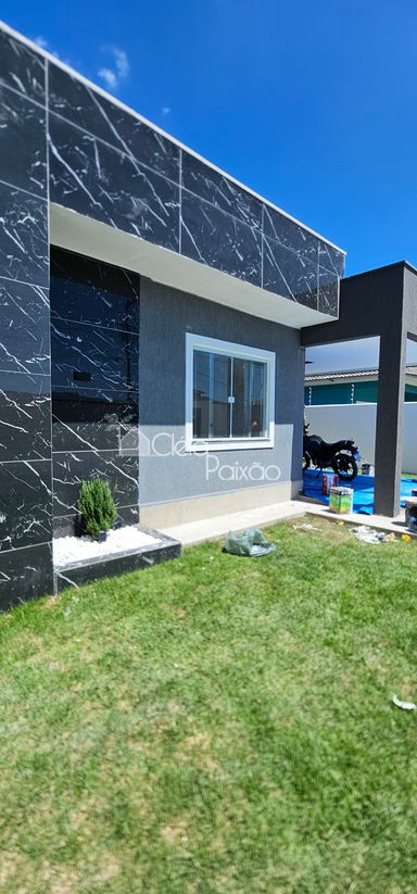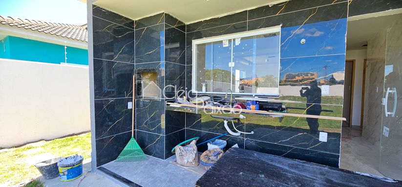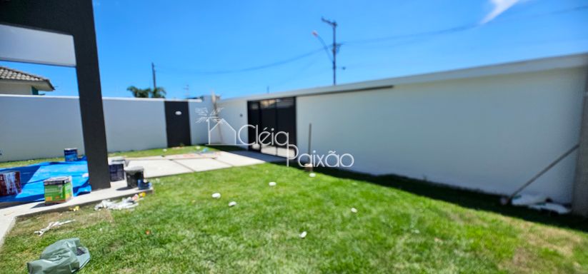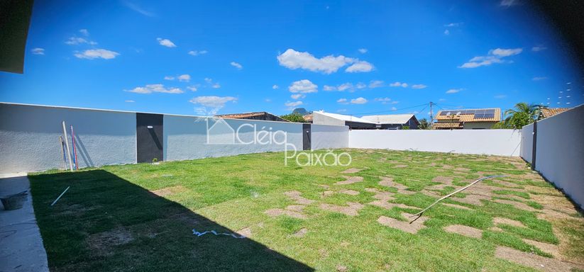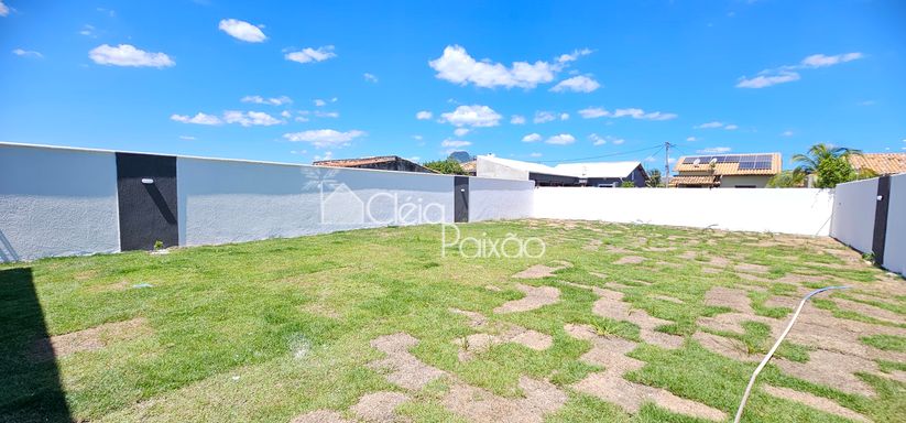 Casa com 3 quartos sendo 1 suíte, ampla sala, cozinha americana, banheiro social, área de serviço, área gourmet integrada à cozinha, terreno inteiro todo gramado.