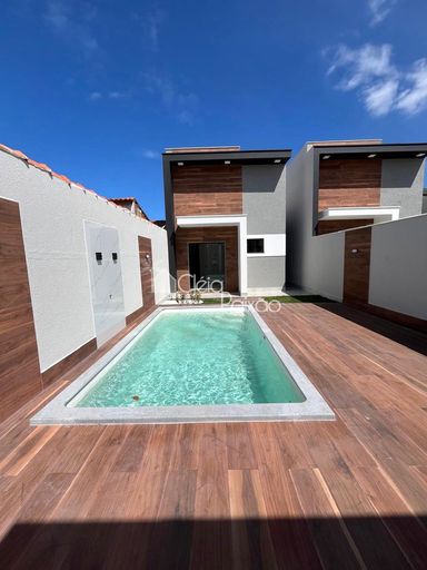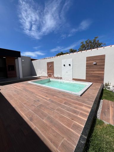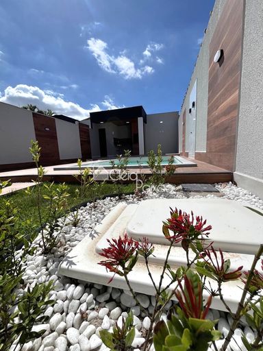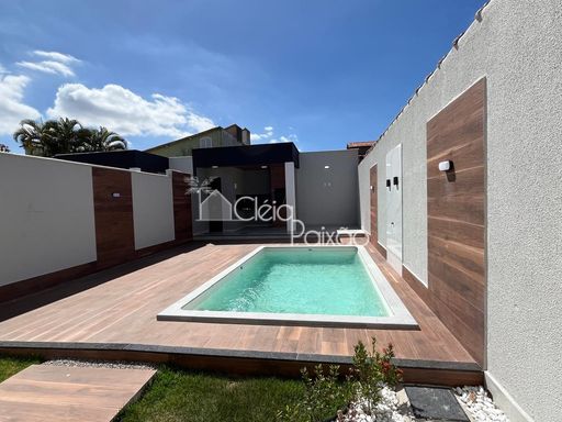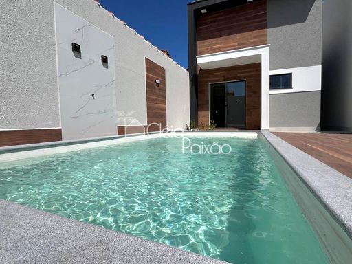 Excelente casa com 3 quartos sendo 1 suíte, ampla sala com o pé direito duplo, cozinha americana, banheiro social, área gourmet com churrasqueira, pia e lavabo. Vagas na garagem e uma linda piscina.