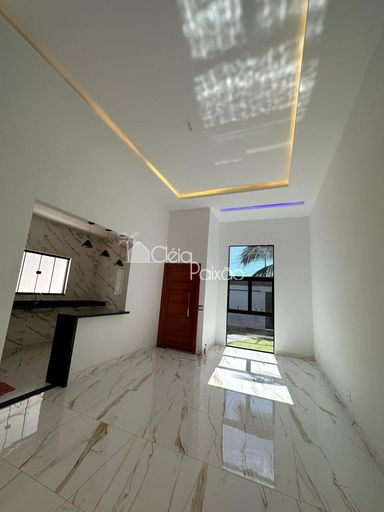 Casa com 3 quartos sendo 1 suíte e 2 suítes canadenses, ampla sala com o pé direito alto, cozinha americana, área de serviço. Toda em fino acabamento, porcelanato, rebaixamento em gesso e iluminação em led. Com quintal todo gramado e com paisagismo!