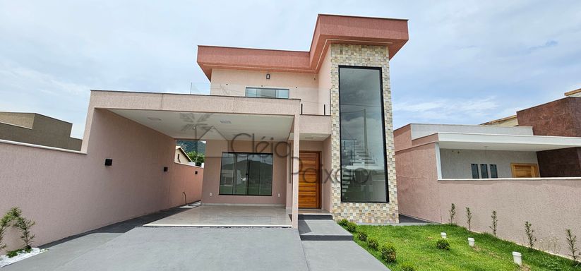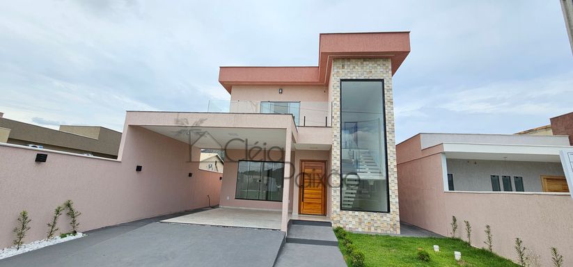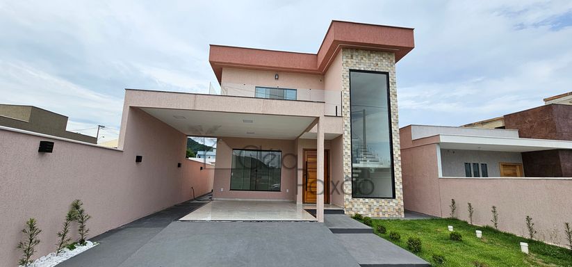 Linda casa dúplex com duas suítes, sala em dois ambientes, 3 banheiros, cozinha, quarto com sacada e linda vista, localizada em condomínio fechado.