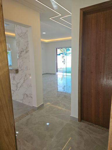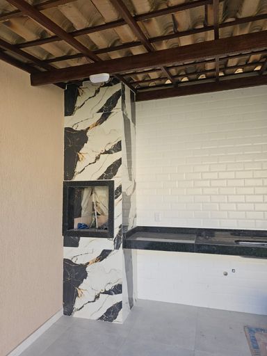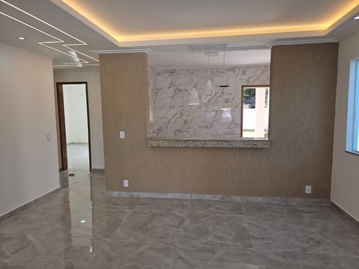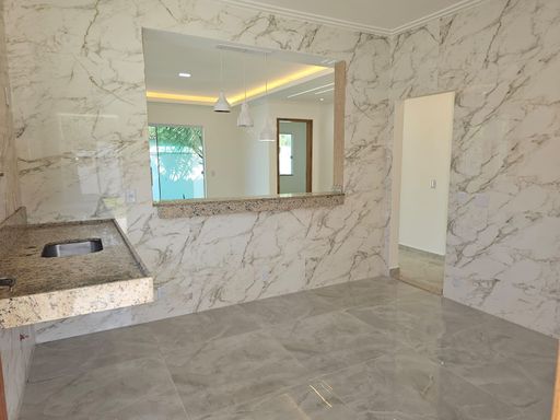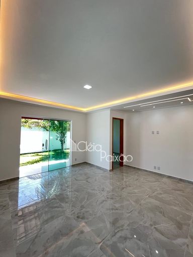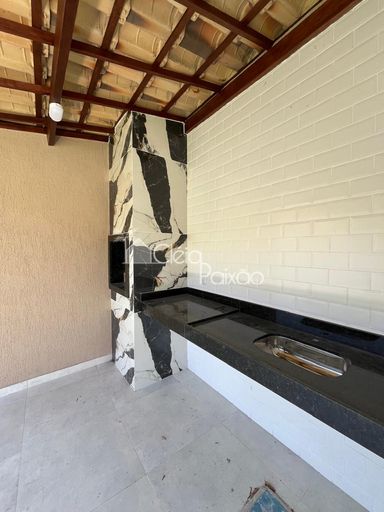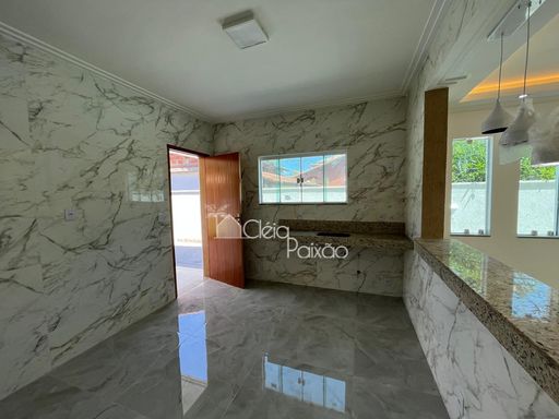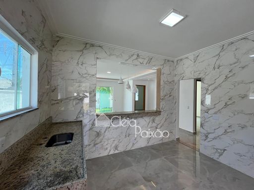 Casa com 3 quartos sendo 1 suíte com closet, ampla sala, cozinha com passa pratos, área de serviço, área gourmet com churrasqueira, pia e lavabo.