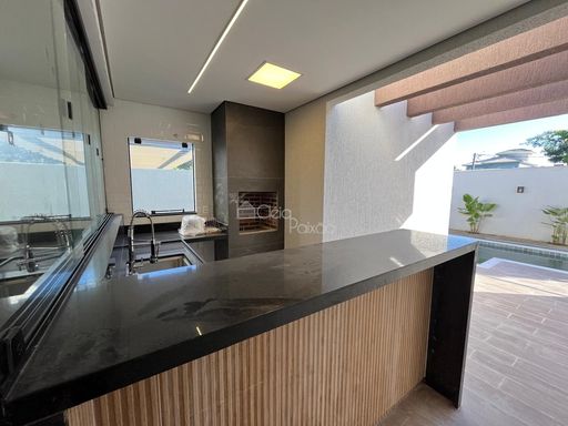 Excelente casa com 3 suítes, ampla sala em dois ambientes, cozinha americana com fogão cooktop e coifa.