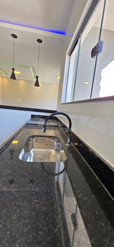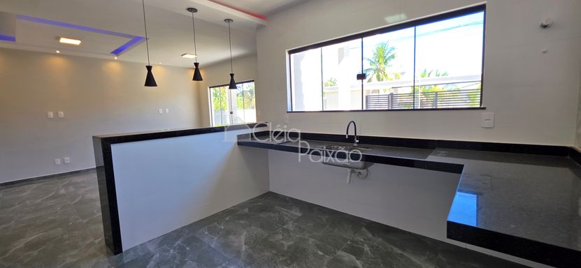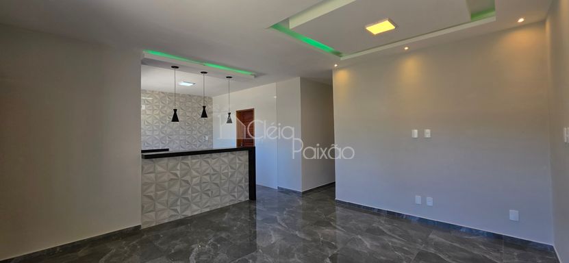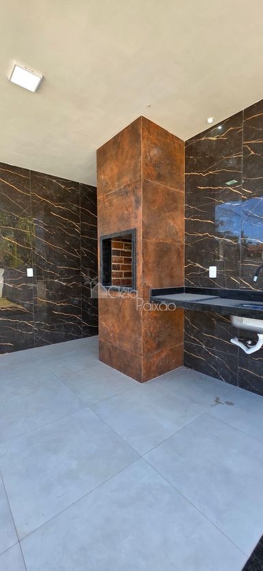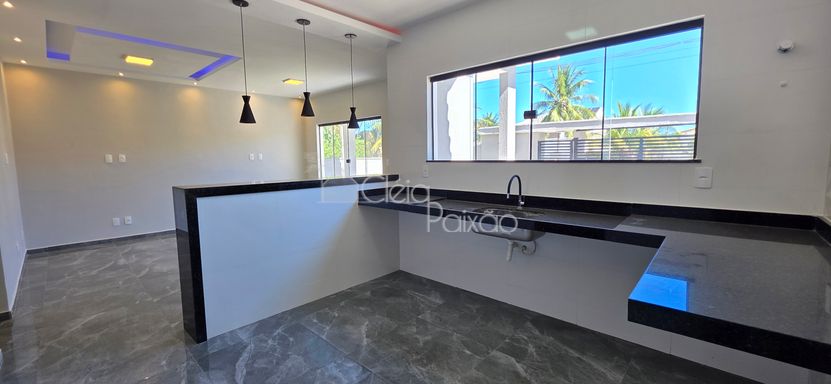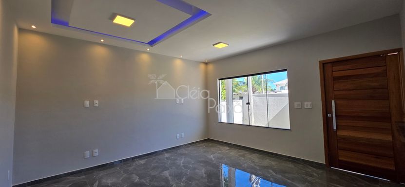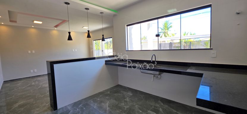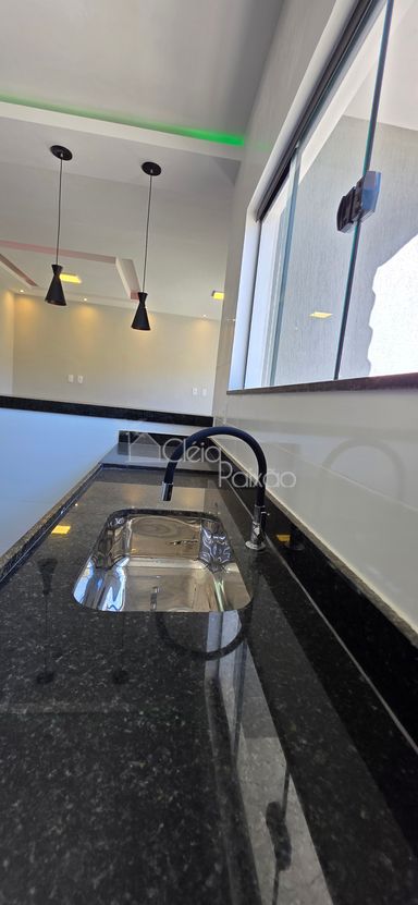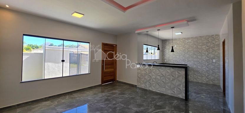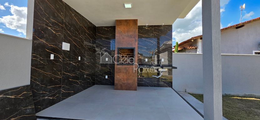 Excelente casa com 3 quartos sendo 1 suíte com closet, ampla sala em dois ambientes, cozinha americana, área de serviço, área gourmet com churrasqueira e pia, quintal todo gramado, vagas para até 5 carros na garagem.