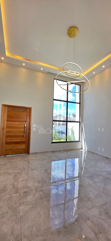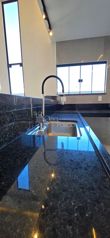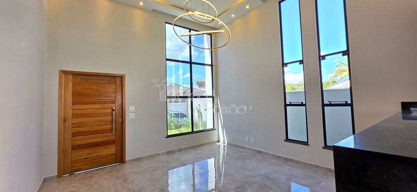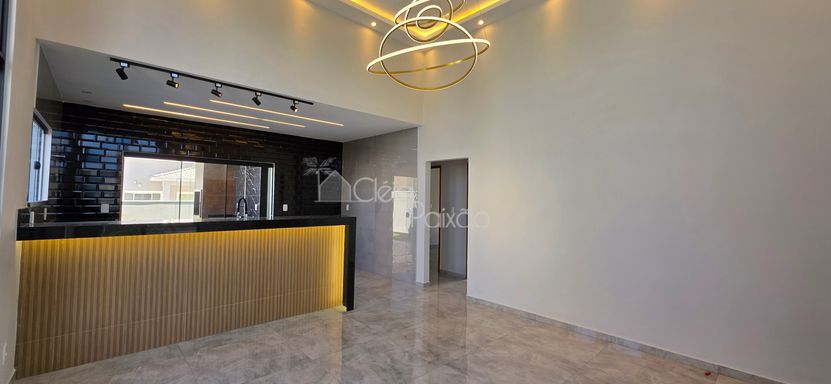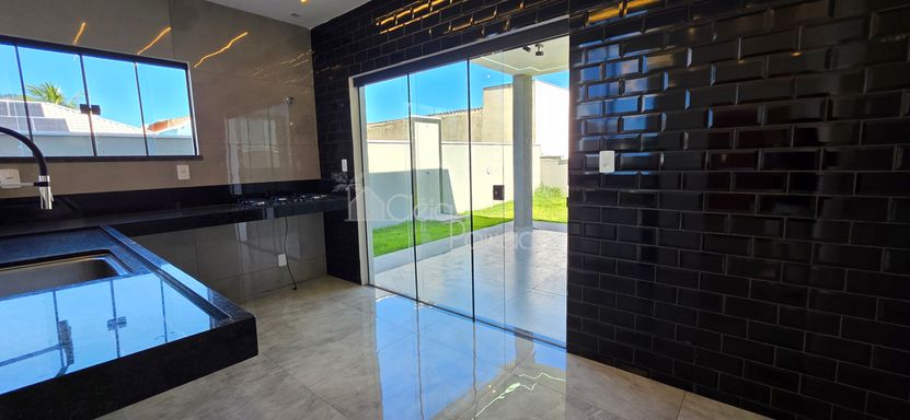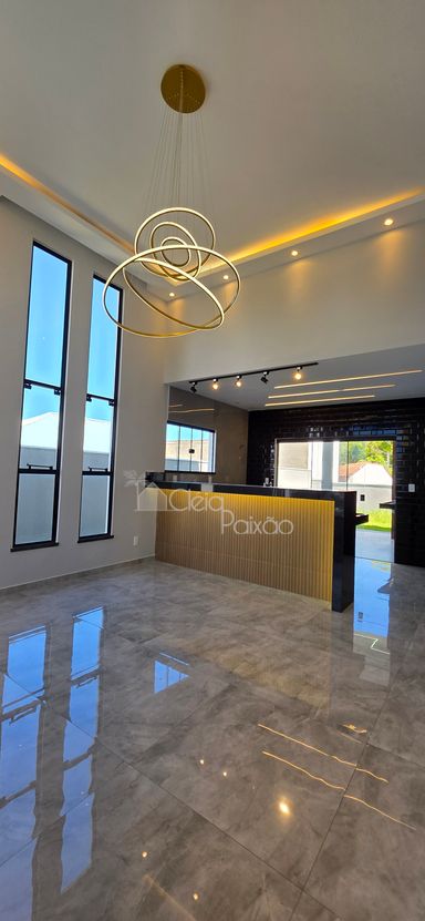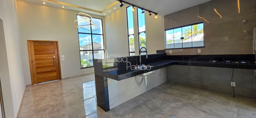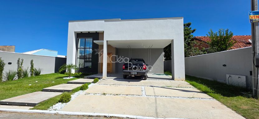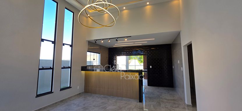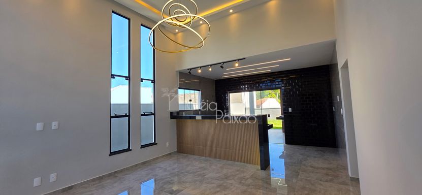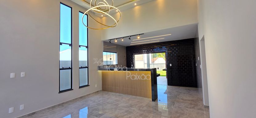 Excelente casa com arquitetura moderna, pé direito alto, composta por 3 quartos sendo 1 suíte com closet, ampla sala em dois ambientes, cozinha americana, área gourmet integrada à cozinha, quintal gramado e com paisagismo, vagas coberta e descoberta na garagem.
