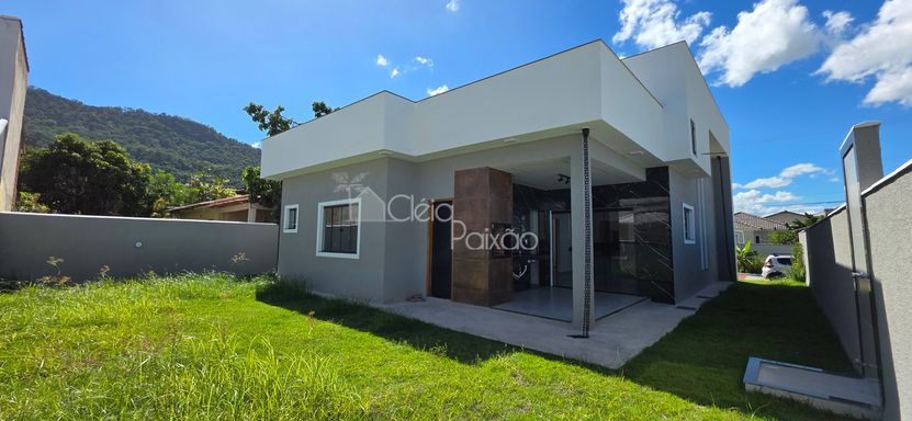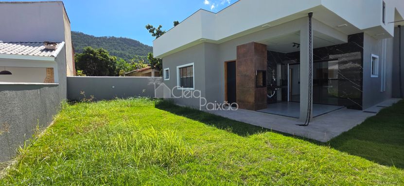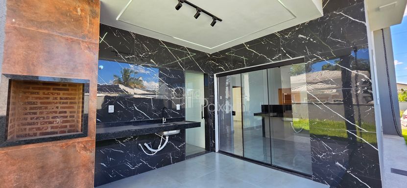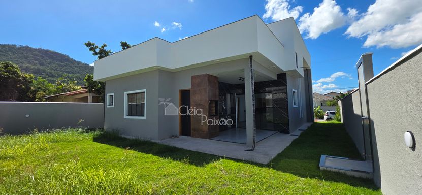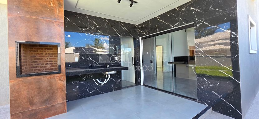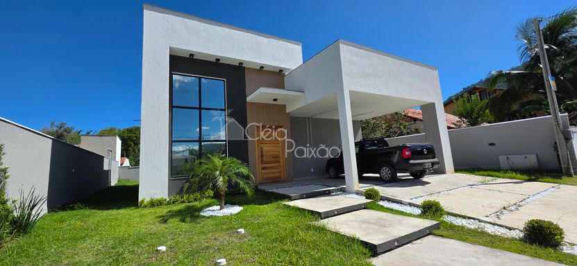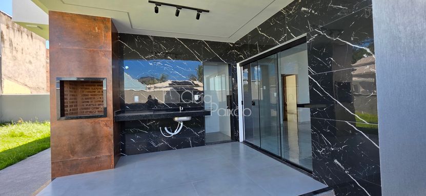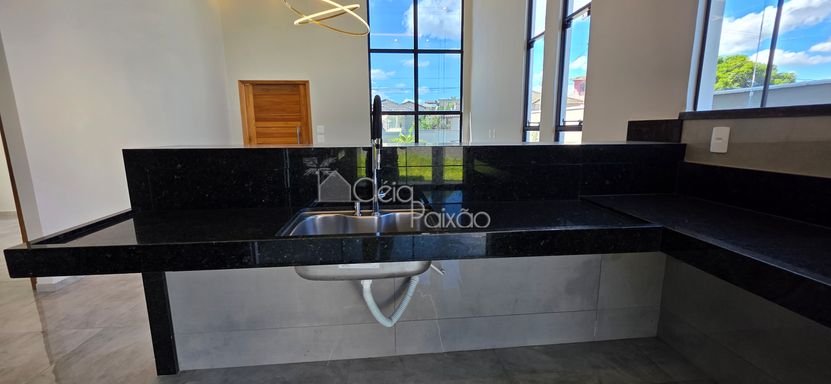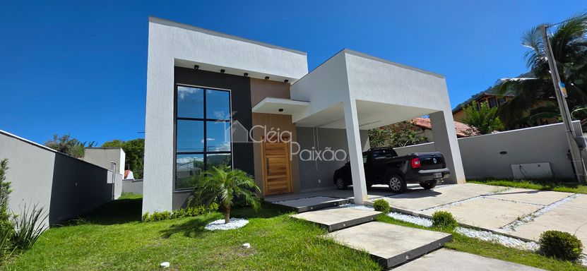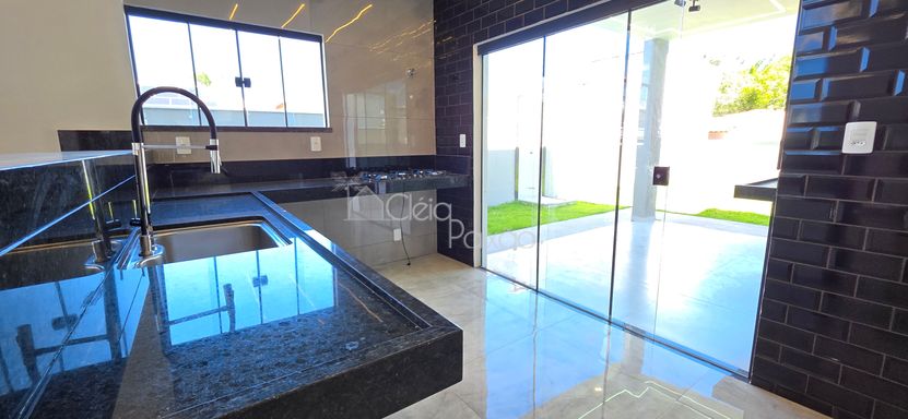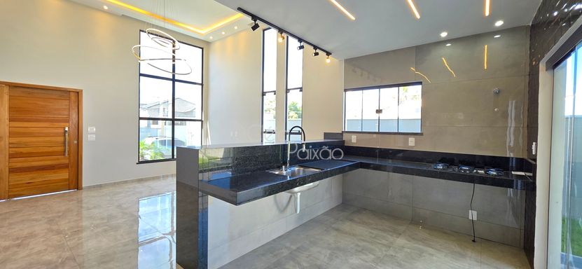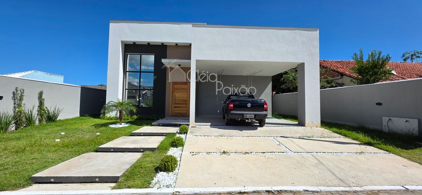 Excelente casa com arquitetura moderna, pé direito alto, composta por 3 quartos sendo 1 suíte com closet, ampla sala em dois ambientes, cozinha americana, área gourmet integrada à cozinha, quintal gramado e com paisagismo, vagas coberta e descoberta na garagem.
