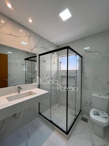 São 3 quartos aconchegantes, sendo uma suíte com closet, além de banheiro social moderno. Toda a casa conta com rebaixamento em gesso e iluminação de embutir, proporcionando sofisticação e aconchego.
