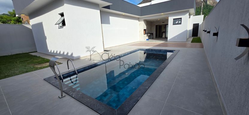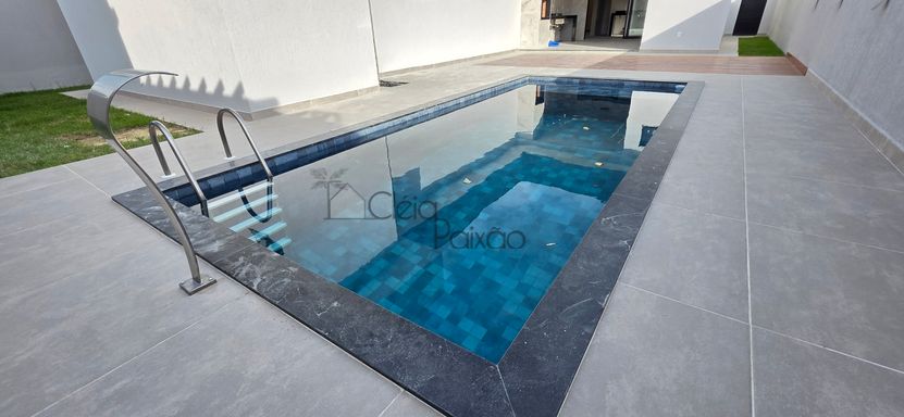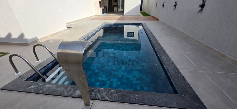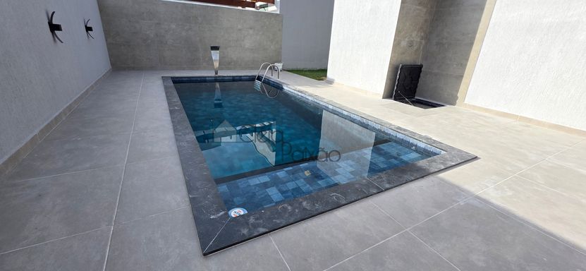 Casa espetacular! Composta por 3 suítes, uma com closet, ampla sala em dois ambientes com o pé direito duplo, cozinha conceito aberto, área de serviço, área gourmet integrada à cozinha, uma linda piscina, chuveirão, vagas coberta e descoberta na garagem, quintal lindo todo gramado e com paisagismo.