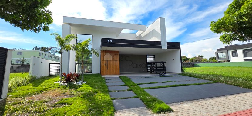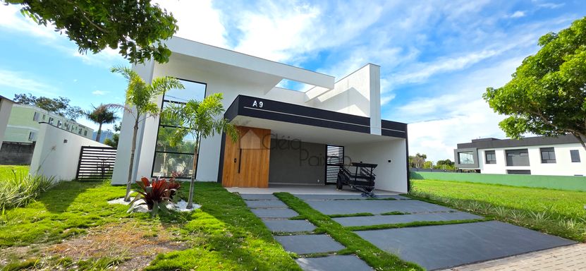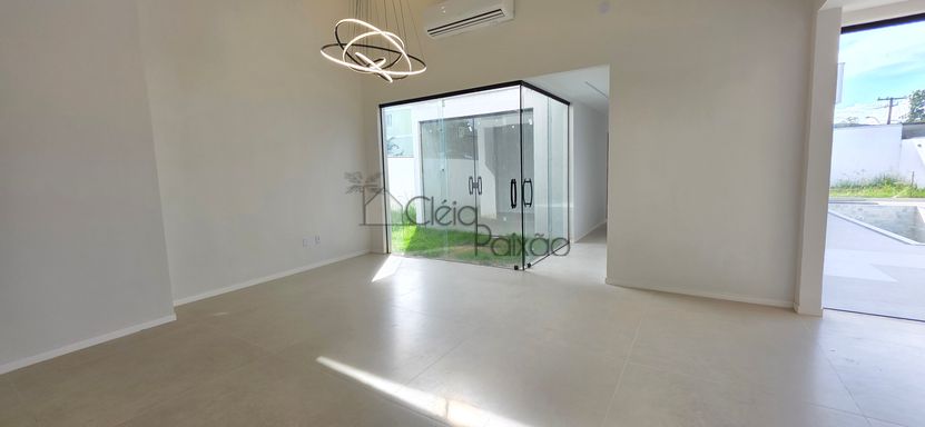 Casa linda e moderna composta por 3 suítes, sendo uma com closet, ampla sala com o pé direito duplo em dois ambientes, cozinha conceito aberto com móveis planejado, banheiros com armários e blindex, todos os cômodos climatizados com ar condicionado Split já instalados. Área gourmet, piscina, vagas na garagem coberta e descoberta, Sistema inteligente com Alexa integrado.