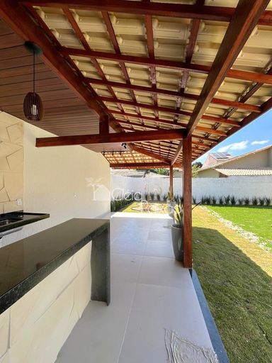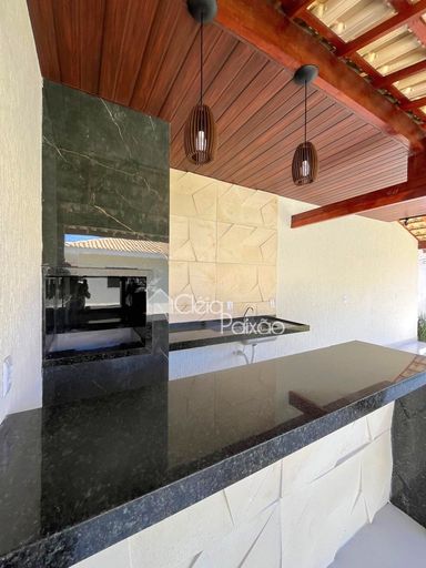 Casa de segunda locação composta por: 3 quartos sendo 1 suíte, ampla sala em dois ambientes, cozinha e banheiros com armários, área de serviço, área gourmet com churrasqueira, pia e banheiro.