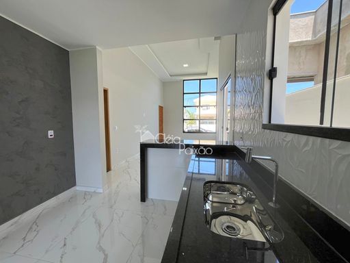 Casa composta por 3 quartos sendo 1 suíte com closet, ampla sala com o pé direito alto, cozinha americana, área de serviço, área gourmet integrada à cozinha, quintal gramado e vaga na garagem.