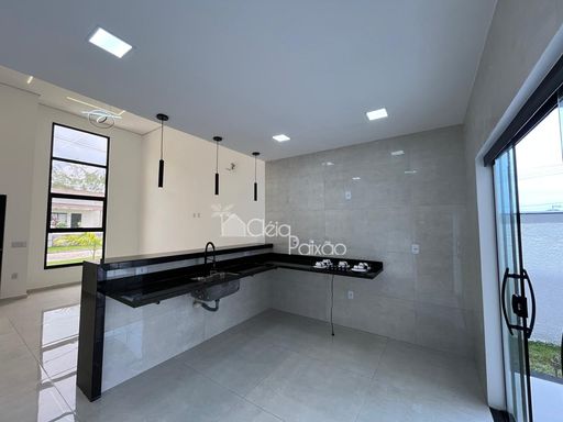 Excelente casa composta por 3 quartos sendo 1 suíte, ampla sala, cozinha americana, área gourmet integrada à cozinha, quintal, vagas coberta e descoberta na garagem.