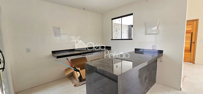 Mais uma belíssima casa com 3 quartos sendo 1 suíte, sala muito ampla, podendo fazer dois ambientes, cozinha americana, área gourmet integrada à cozinha, área de serviço e lavabo, quintal gramado.