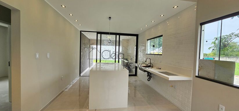 Casa incrível composta por 3 quartos sendo 1 suíte com closet, ampla sala com o pé direito duplo, cozinha americana, área gourmet integrada à cozinha, área de serviço, lavabo e quartinho para guardados. Imóvel em finíssimo acabamento!