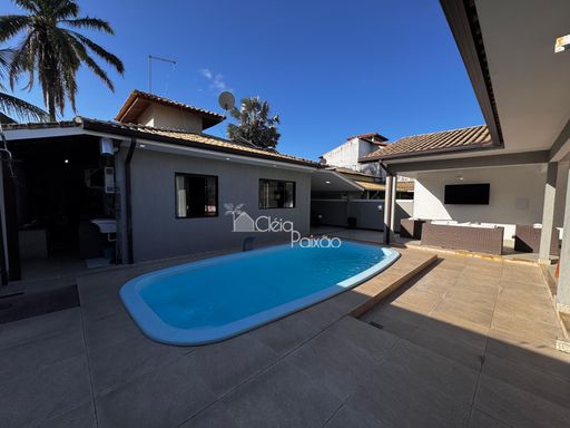 Ótima casa com dois quartos sendo 1 suíte, mais uma suíte no anexo, com área gourmet e piscina.