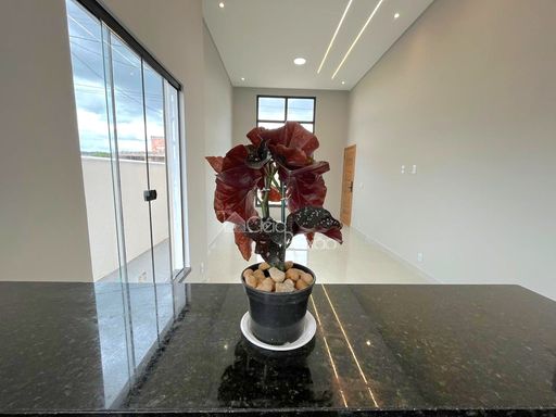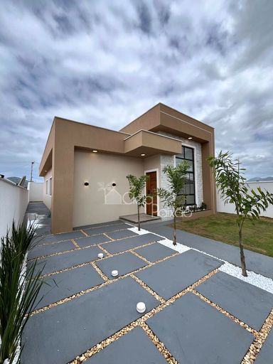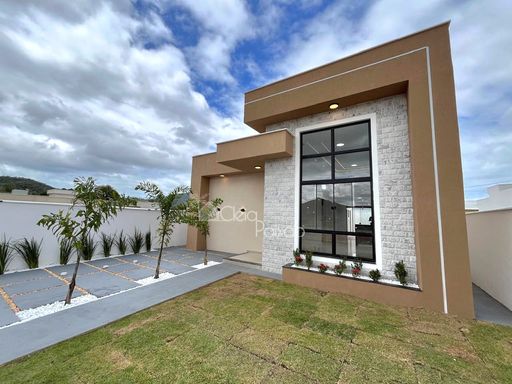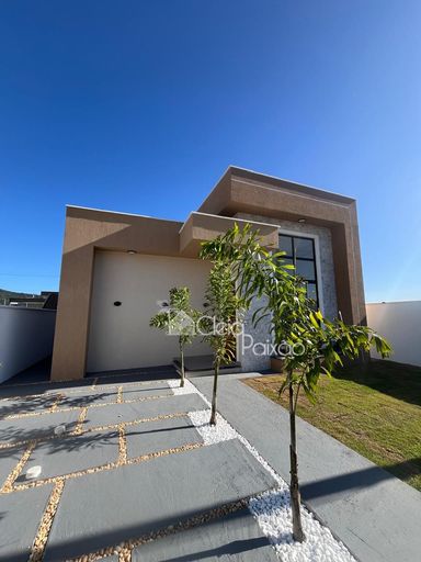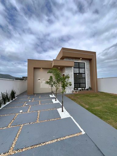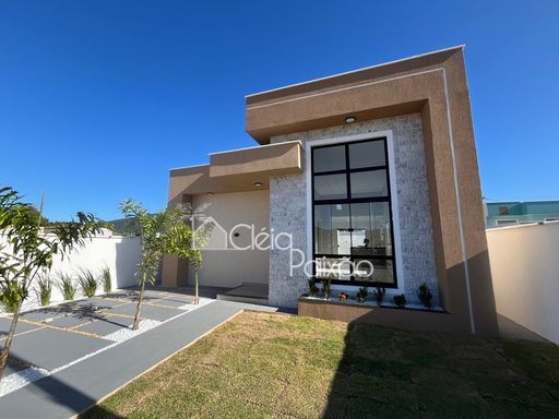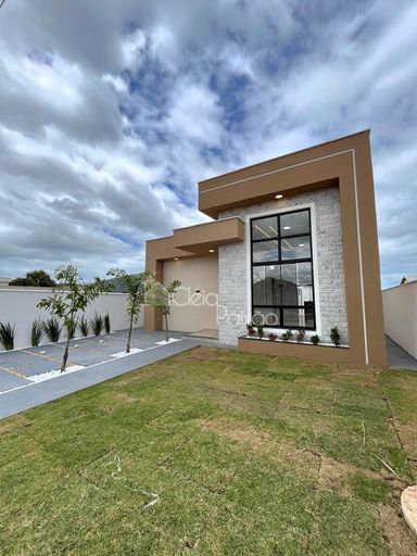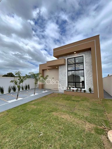 Casa linda e moderna composta por 3 quartos sendo 1 suíte com closet,  ampla sala, cozinha americana,  área de serviço,  área gourmet integrada à cozinha,  quintal gramado e com paisagismo.