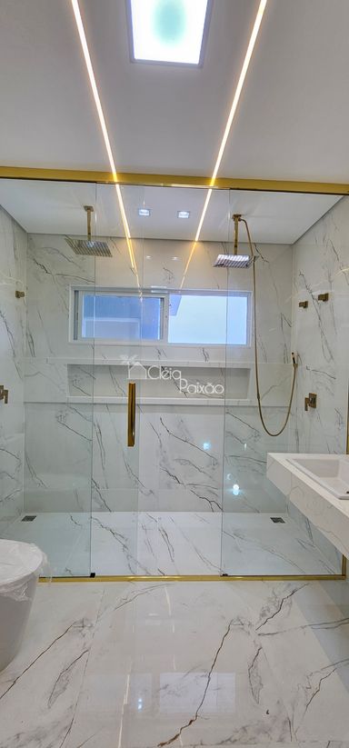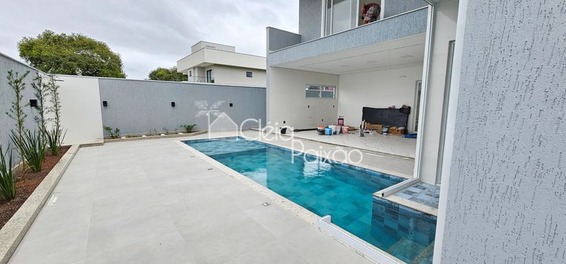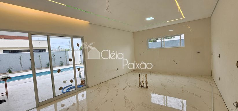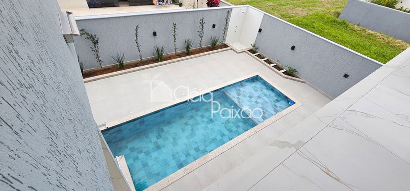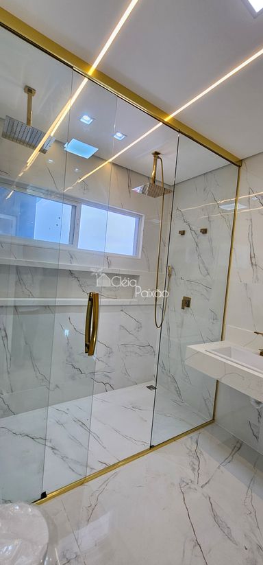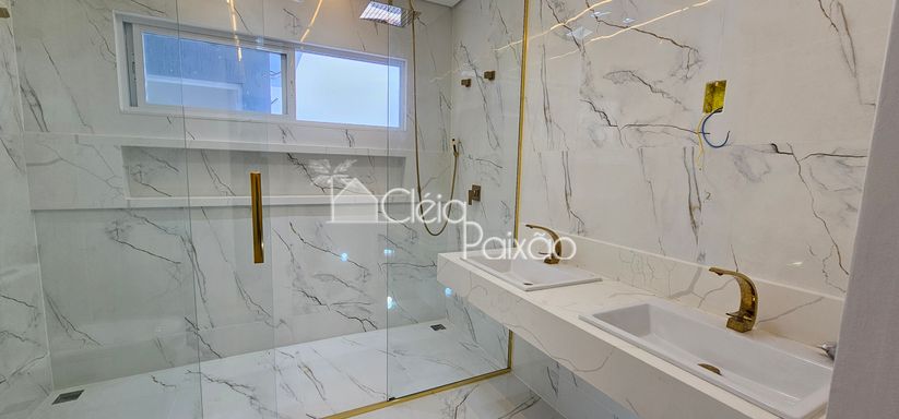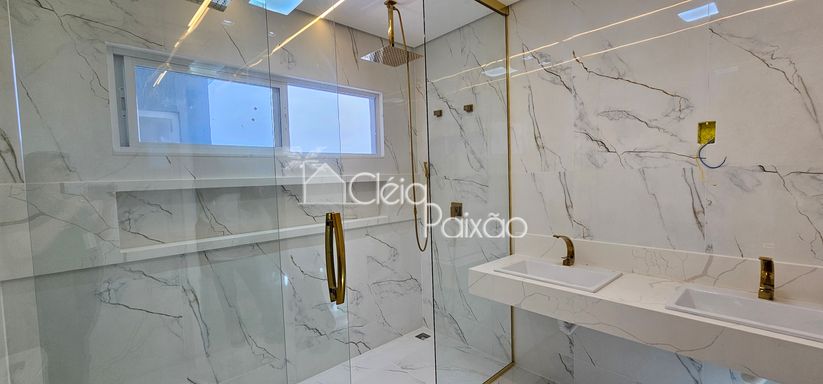 Composta por quatro dormitórios (todos suítes, sendo uma master com banheira de hidromassagem, parede em concreto com portas e janelas blindadas, sala em dois ambientes com pé direito duplo medindo 5,90m, cozinha azulejada com pia e bancada em granito, espaço gourmet fechado com vidro temperado, churrasqueira, piscina, paisagismo, garagem para quatro carros (sendo dois cobertos), o imóvel possuirá sofisticado sistema de segurança com reconhecimento facial e biométrico, comando de voz que controla toda casa, energia solar e reaproveitamento de água, imóvel todo mobiliado, com alexa. Energia solar, boiler. Sauna e piscina com hidromassagem.