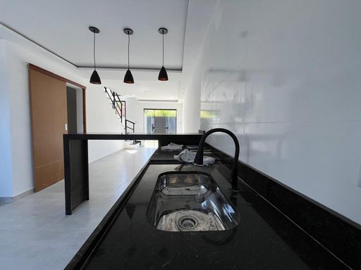 Ótima casa dúplex com dois quartos, 1 quarto com sacada. Ampla sala, cozinha americana, banheiro social, área de serviço e vaga na garagem.