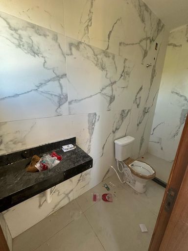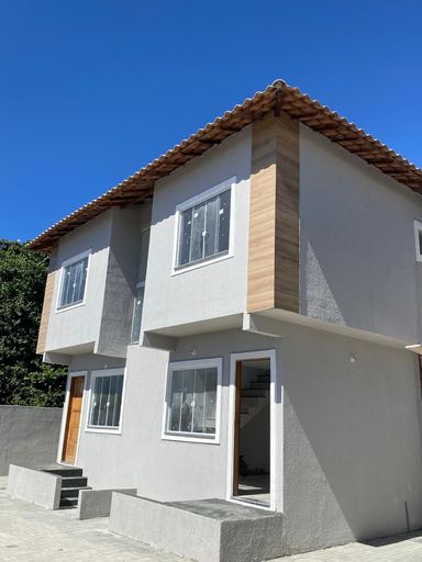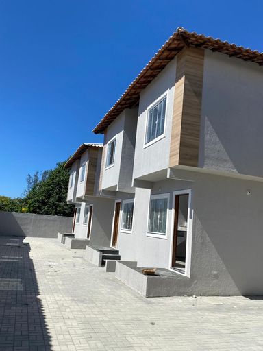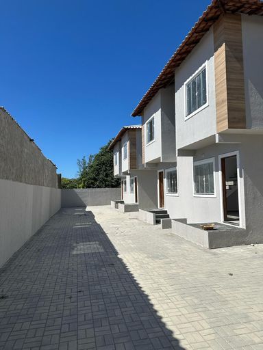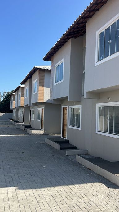 Casas dúplex com duas suítes, sala, cozinha, lavabo, área de serviço e vaga na garagem.