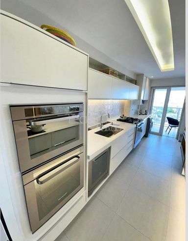 Luxo, conforto e praticidade distinguem esse imóvel, com eletrodomésticos tecnológicos,( fogão profissional de 5 bocas, cooktop de indução, e duas pias com torneiras aquecidas, bancadas em Deckton, material ultra resistente à riscos manchas e abrasão. Lava loucas e escorredor com drenagem direta.