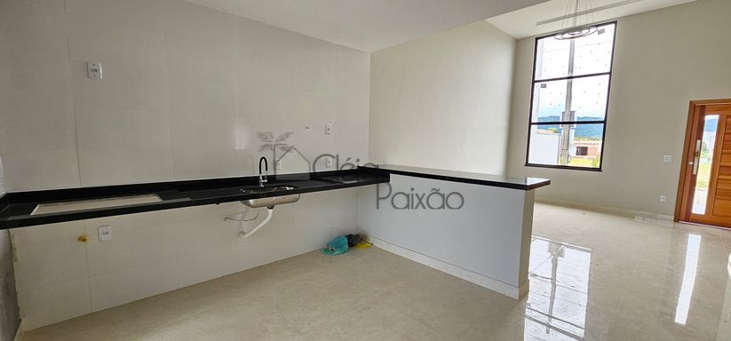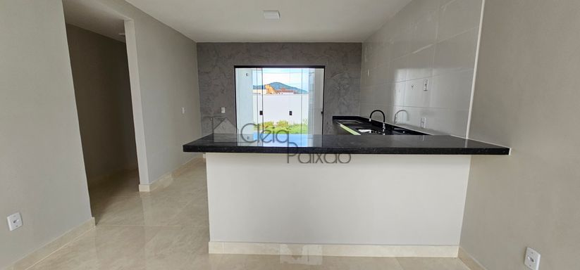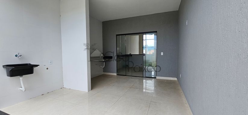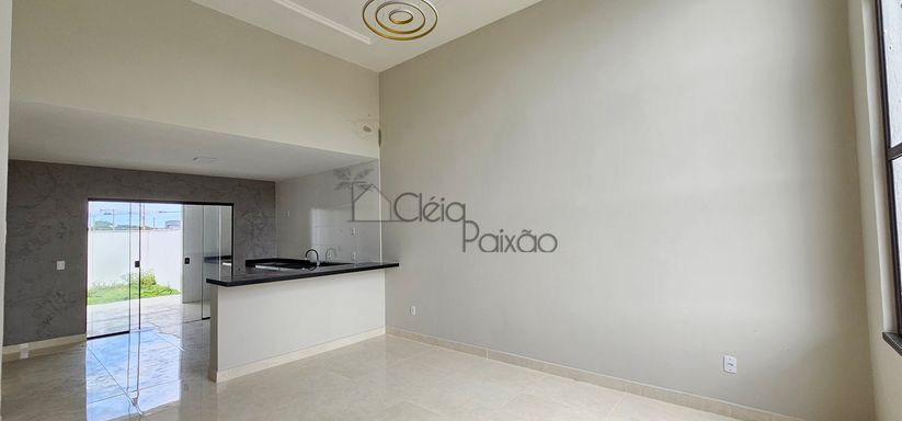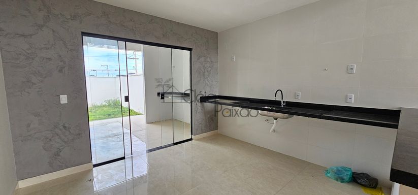 Excelente casa com 3 quartos sendo 1 suíte, ampla sala, cozinha, banheiro social, área gourmet integrada à cozinha, área de serviço, vaga na garagem e quintal gramado.