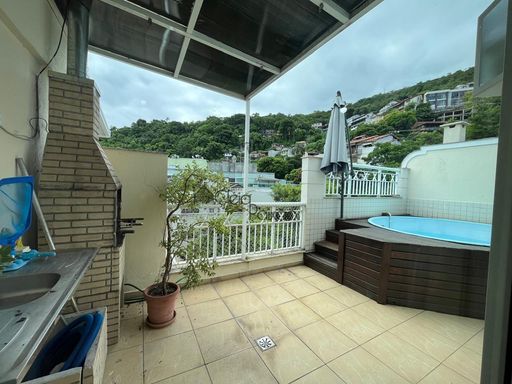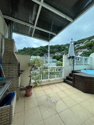 Excelente cobertura dúplex com 3 suítes à venda no bairro São Francisco, ampla sala com ar condicionado instalado, cozinha com móveis, quartos com armários, duas suítes com varanda, piscina, área gourmet com churrasqueira, pia e lavabo.